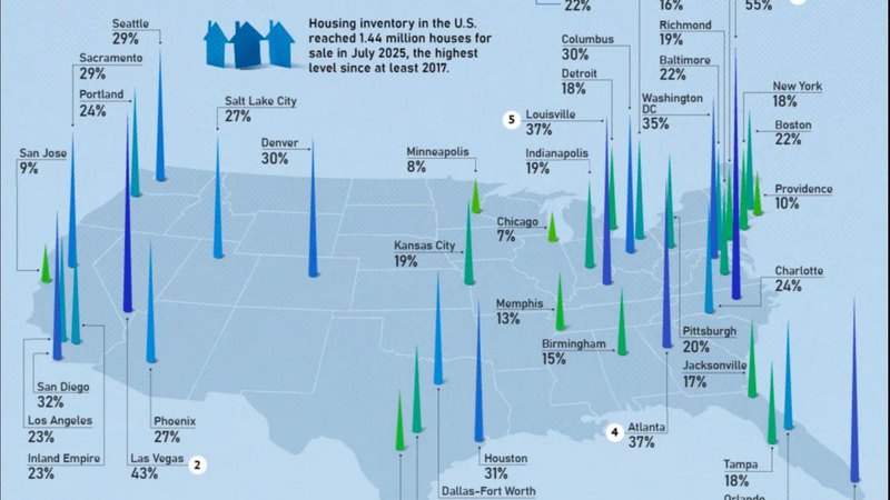 The attached graphic highlights the velocity of this shift. In just one year (July '24 to July '25), national housing stock jumped 26%. However, the story varies wildly depending on where you look.